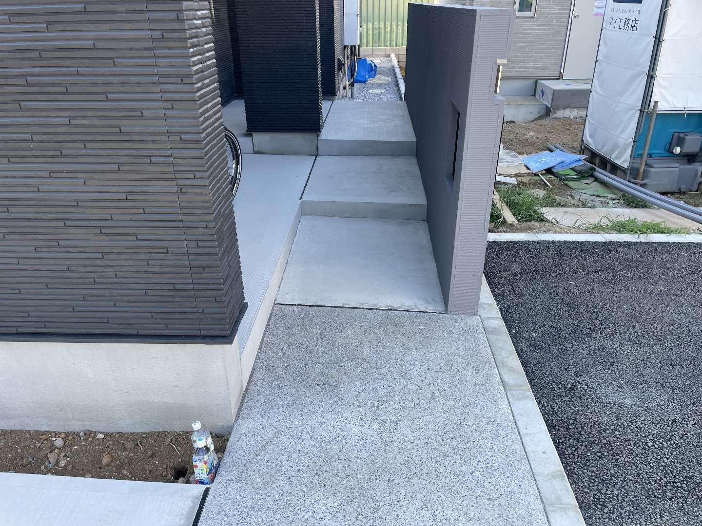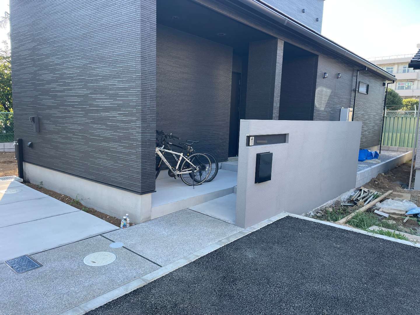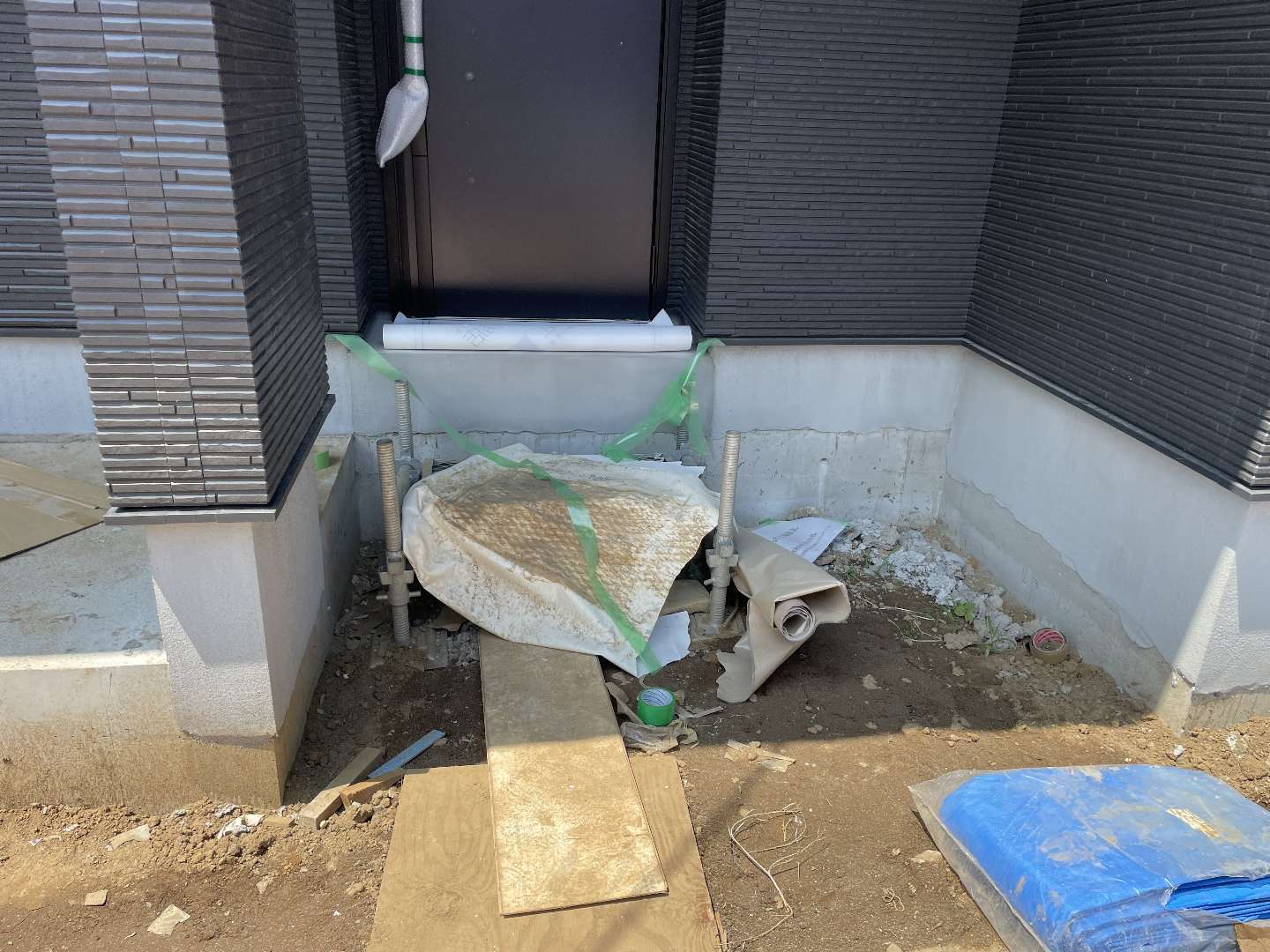 建物の設計の方が配慮をされた形で玄関ポーチは施工されておらず、外構工事の方での施工となる現場となっております。