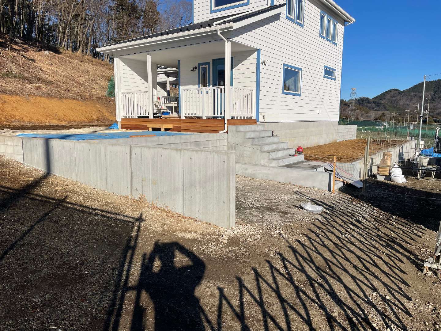 玄関入口側の既存擁壁等は、すでに出来ており、ここから新規に外構工事の施工となります。