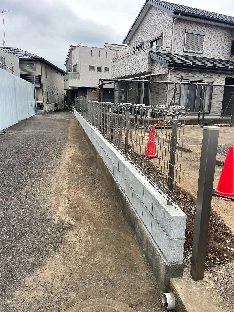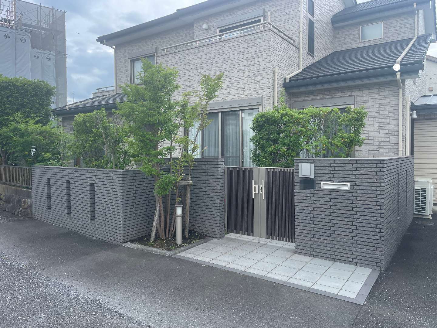 完成形としては、エクステリアにて目線を外せるようにご提案させていただき、エントランスは直線的に入らない様にと、掃き出し窓部分のプライベート空間部分とを干渉しない様に門塀の作り方で、人の動線からも目線を外せるデザインとし、オープン外構工事ながらも、しっかりと、お客様のご要望にあわせたご提案とささていただきました。