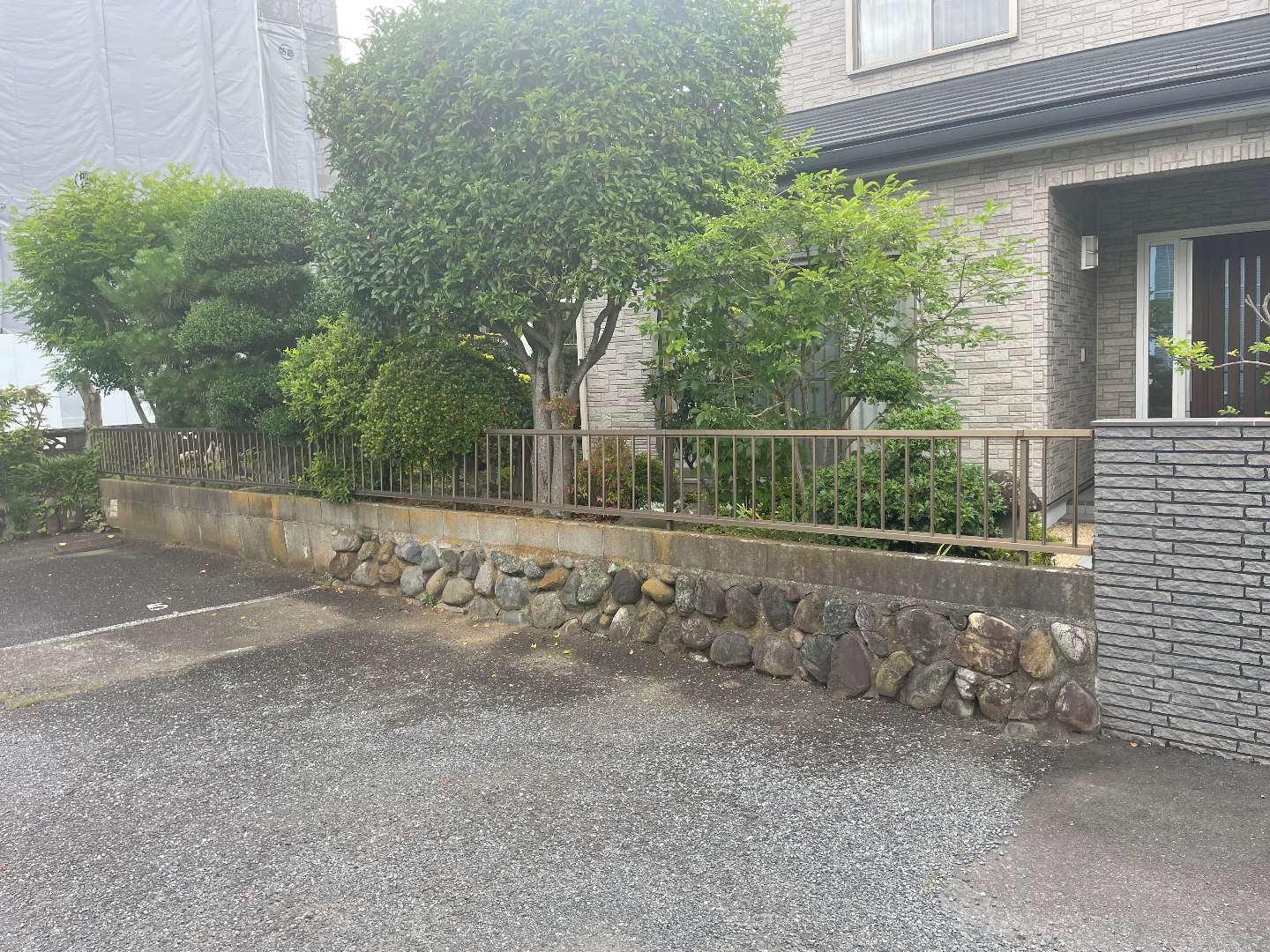 リフォーム外構工事をする一番のきっかけは、建物の掃き出し窓が外周部から丸見えになっているのがかなり気になっており、その建物の全面部は貸駐車場・その接道といたしましては県道バス通りとバス停、と言う、建物周りの現況でありました。