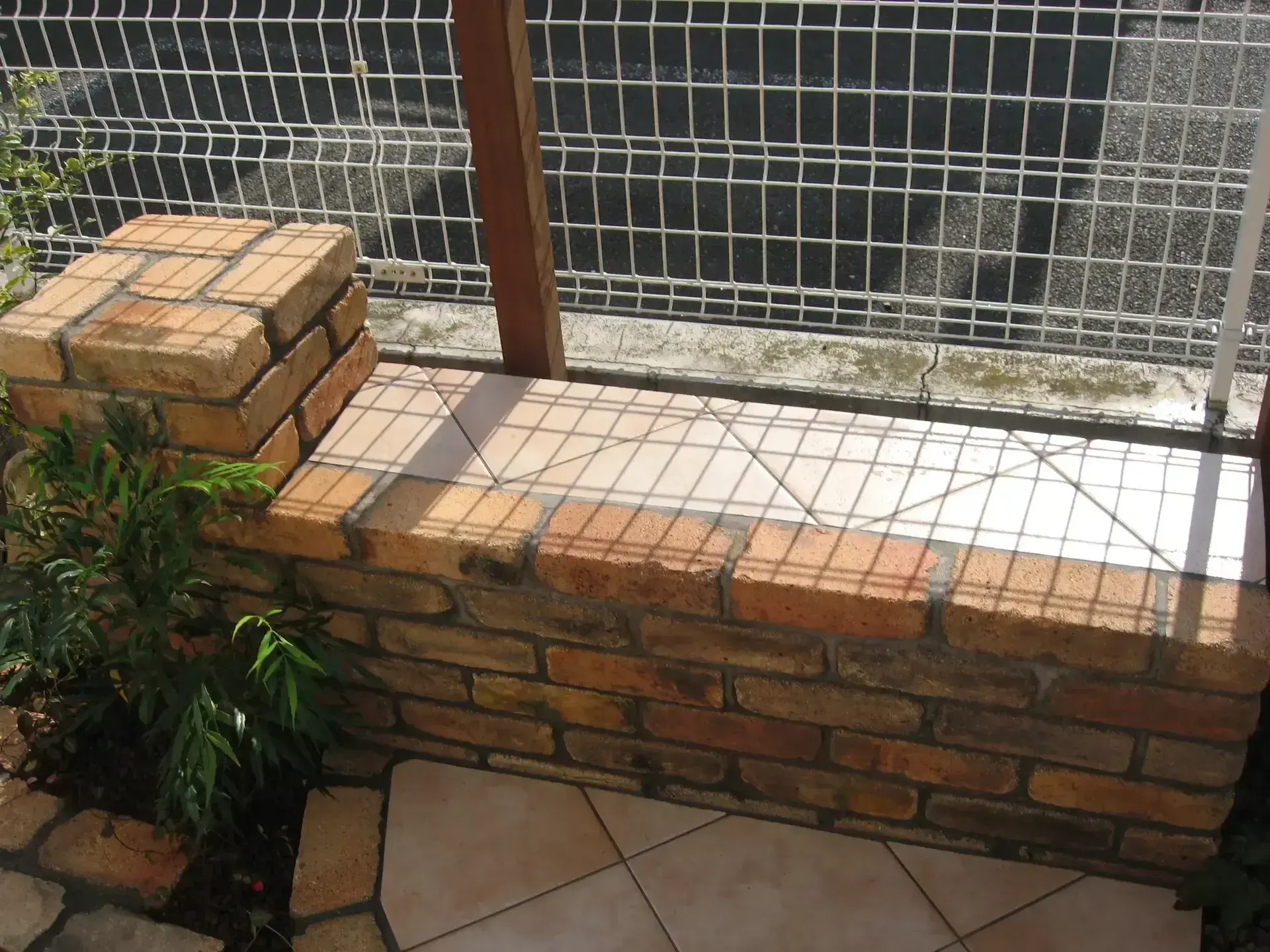 既存レッドシダ―デッキ(メンテナスしながら約15年使用)が掃き出し前にあり、デッキ前の敷地が、会社駐車場となっており、目隠しとしてシンボルツリーのシマトネリコが配植されておりましたが、植栽の成長と共に、会社駐車場敷地へと葉張りを出してしまい、剪定するものの、植栽の恰好が悪くなってしまう状態でした。